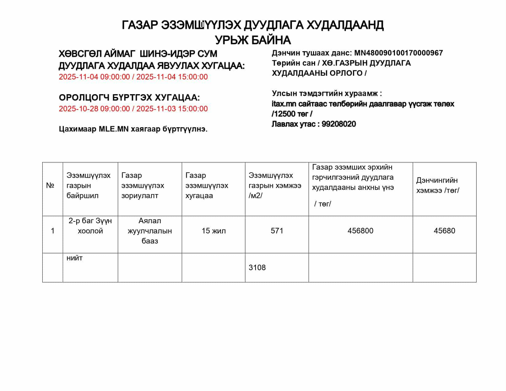 ГАЗАР ЭЗЭМШҮҮЛЭХ ДУУДЛАГА ХУДАЛДААНД УРЬЖ БАЙНА.