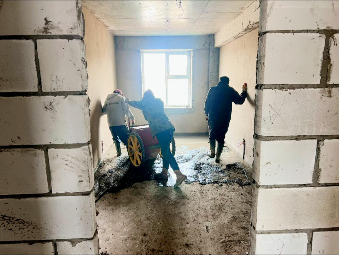 Ажлын явц: 1-р давхрын дотор хамар ханын өрлөгө, 2,3-р давхрын шавардлагын ажил, хар шалны цутгалт, хавтгай дээврийн хар цаас наах ажил хийгдэж байна.