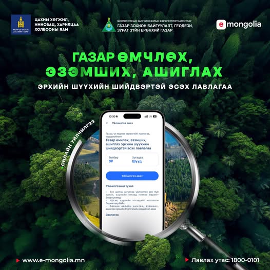 Газар зохион байгуулалт, геодези, зураг зүйн ерөнхий газар лавлах утас: 1800-0101