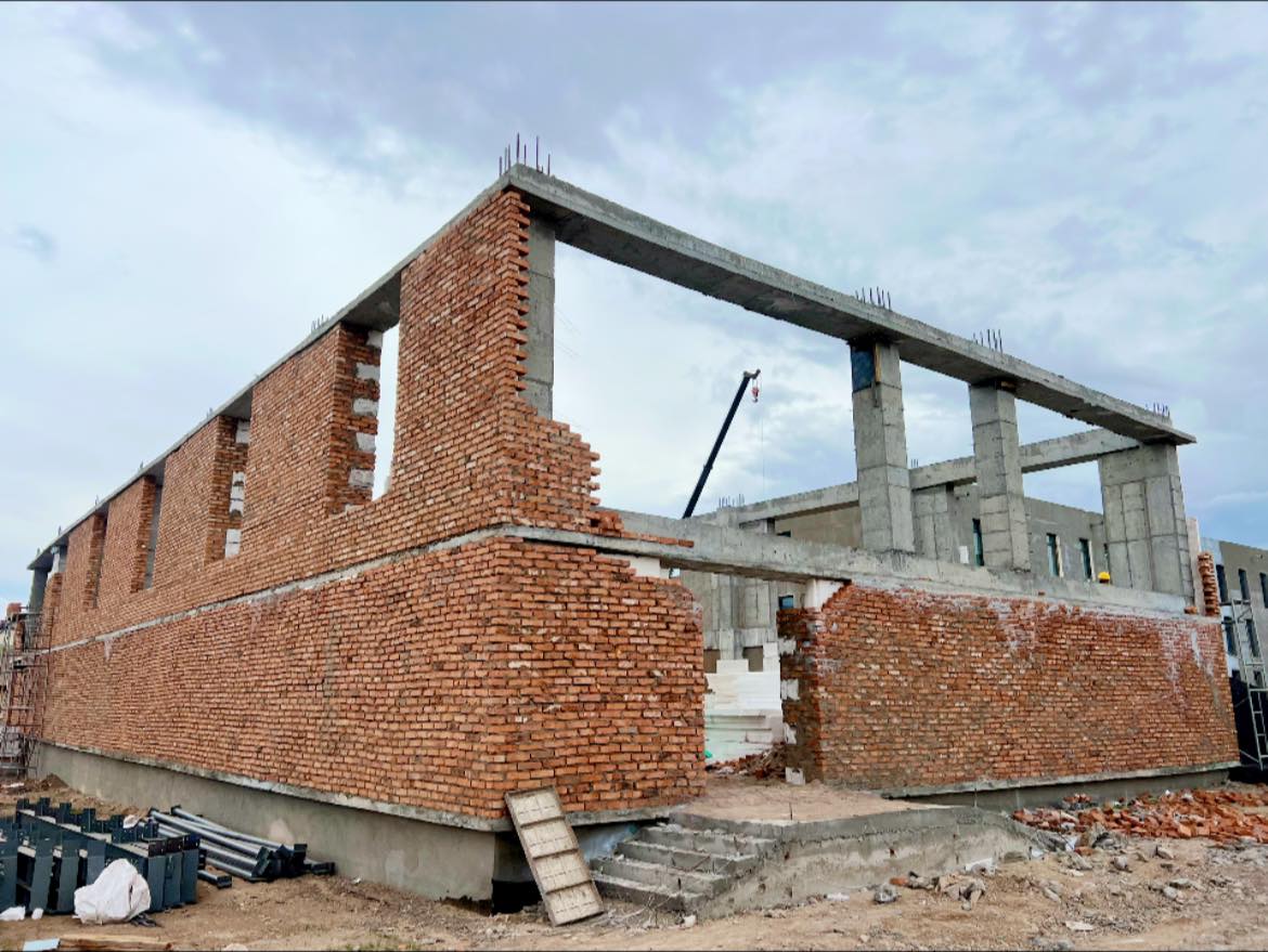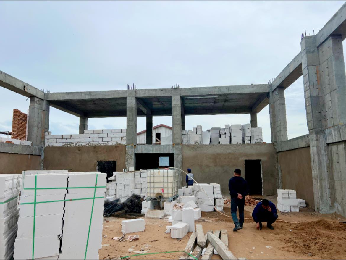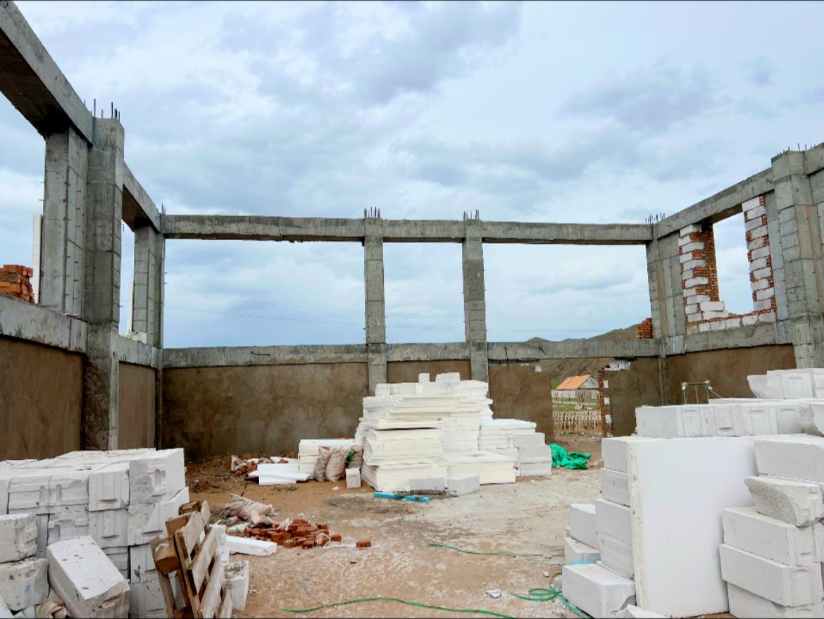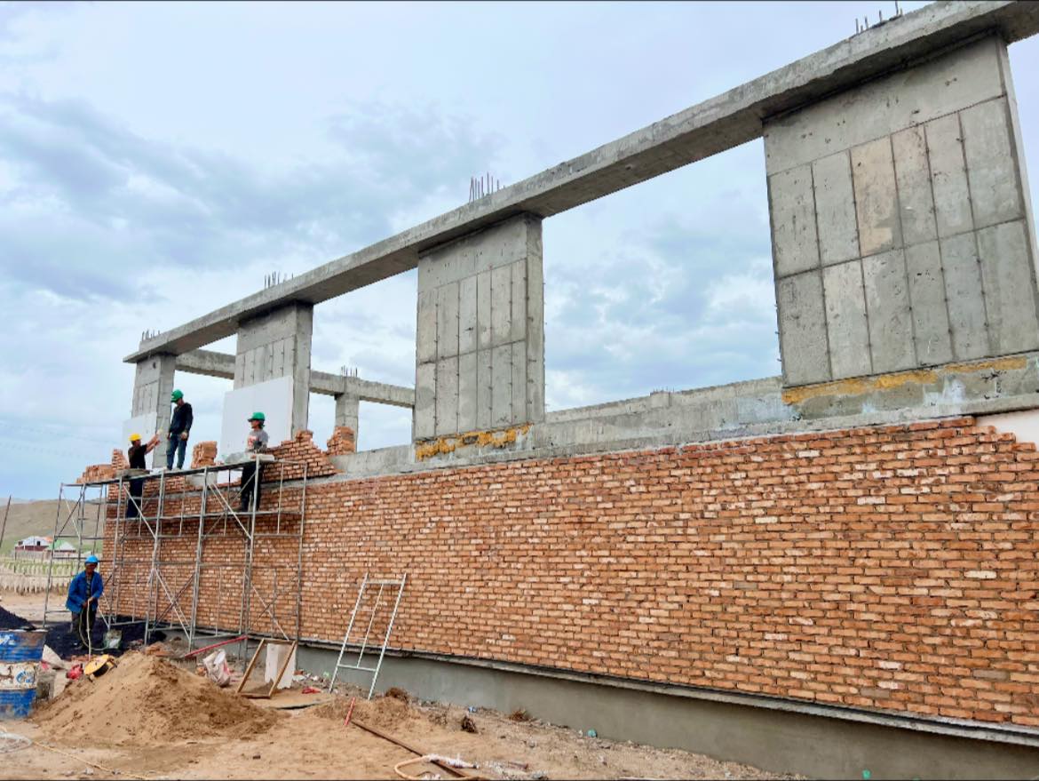 Ажлын явц: Гадна ханын өрлөгө, дотор хамар хана, шавардлагын ажил хийгдэж байна.