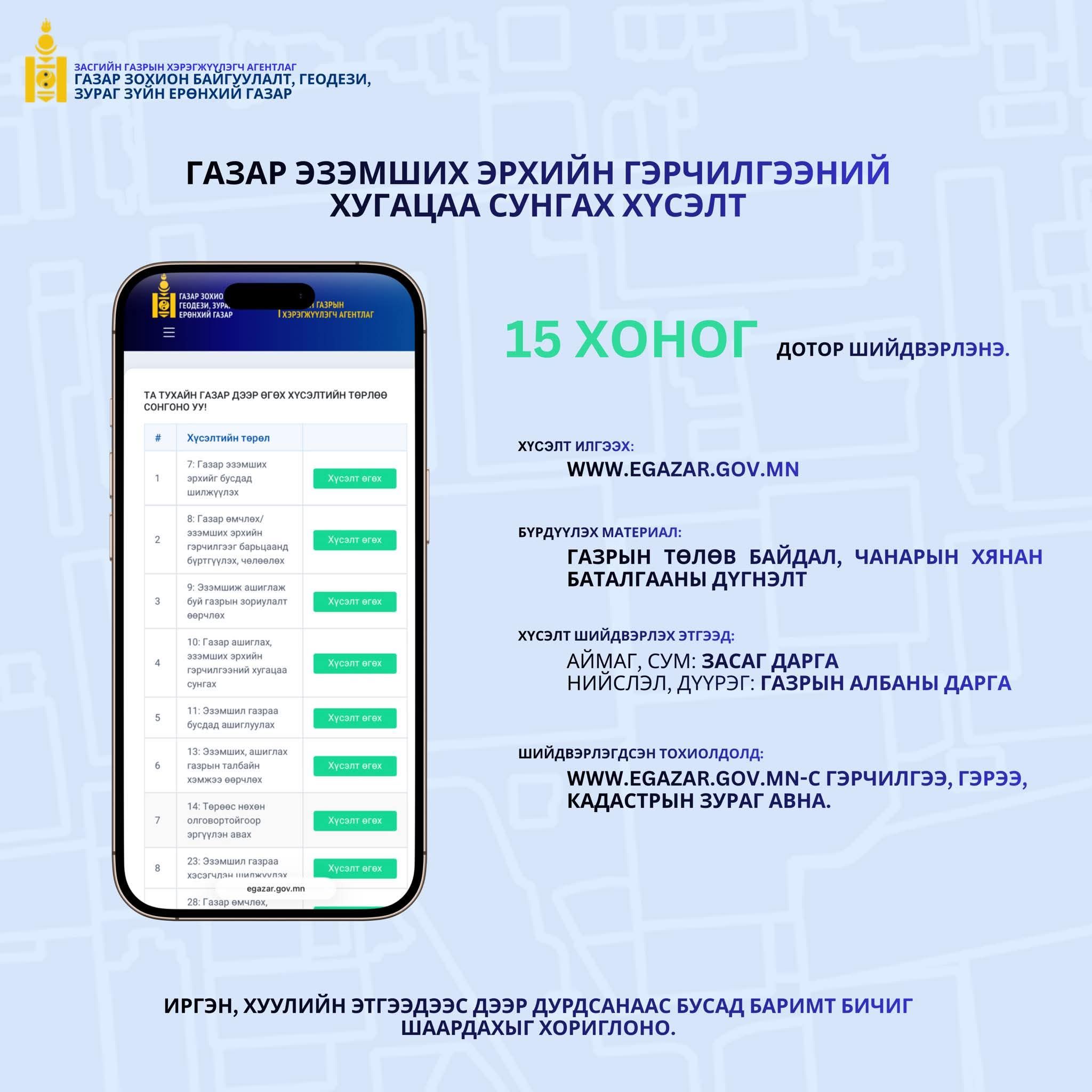 ГАЗАР ЭЗЭМШИХ ЭРХИЙН ГЭРЧИЛГЭЭНИЙ ХУГАЦАА СУНГАХ
